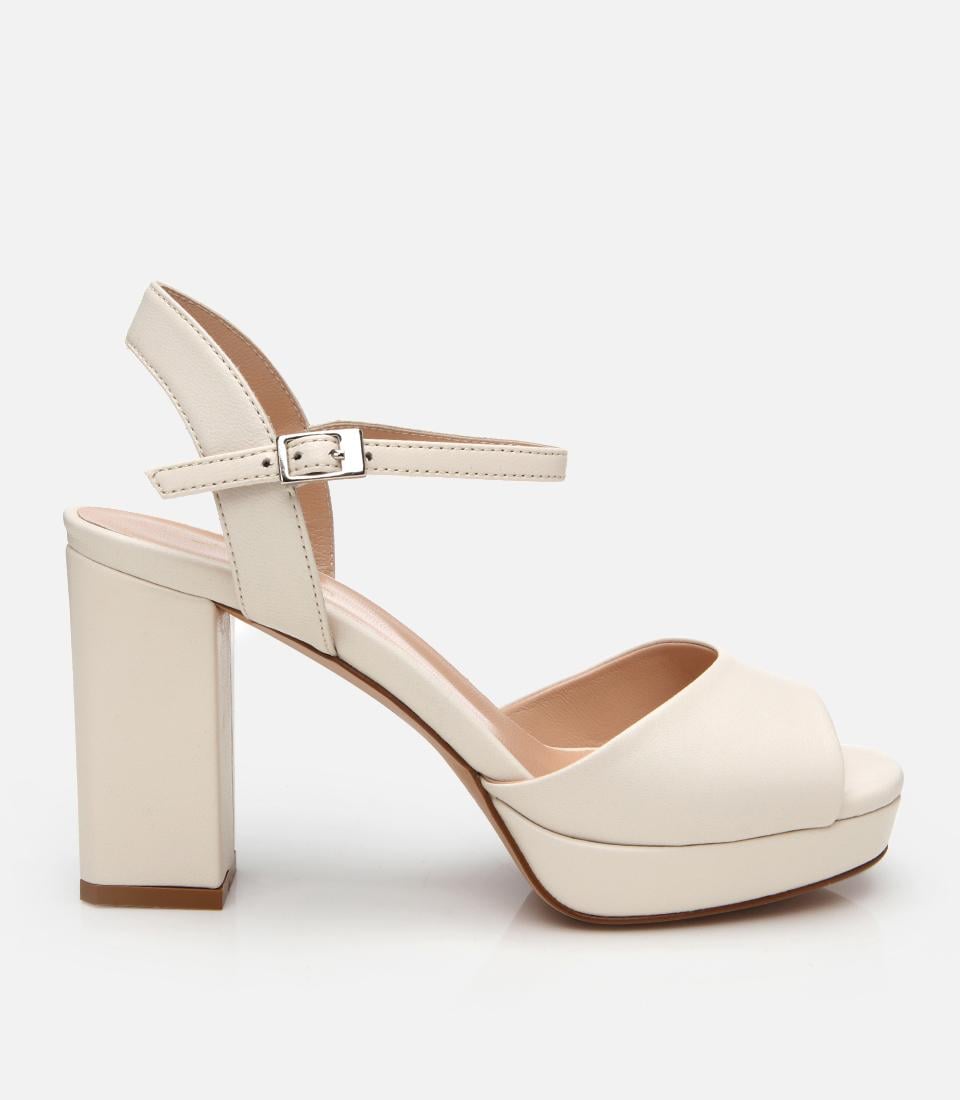 Kadın Deri Ekru Kalın Topuklu Sandalet