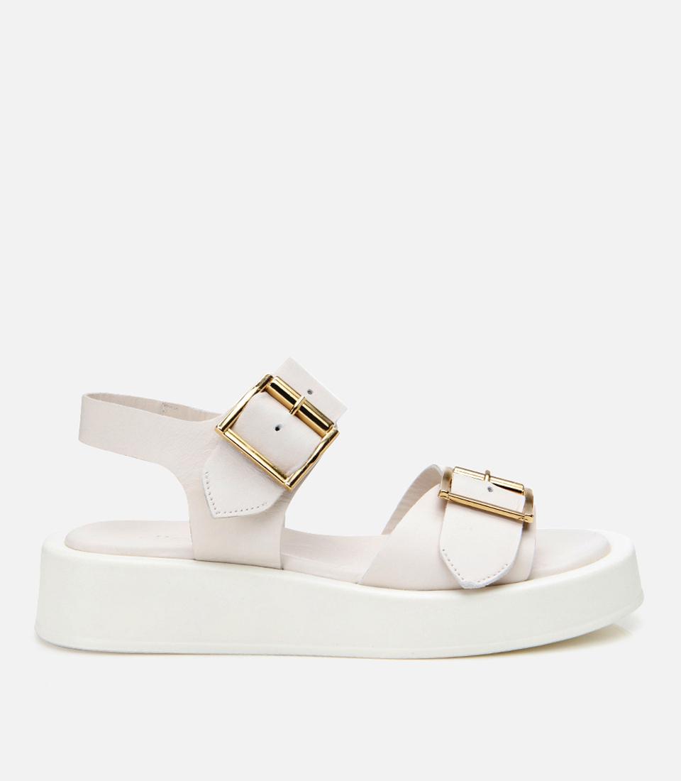 Kadın Deri Ekru Kemerli Düz Sandalet