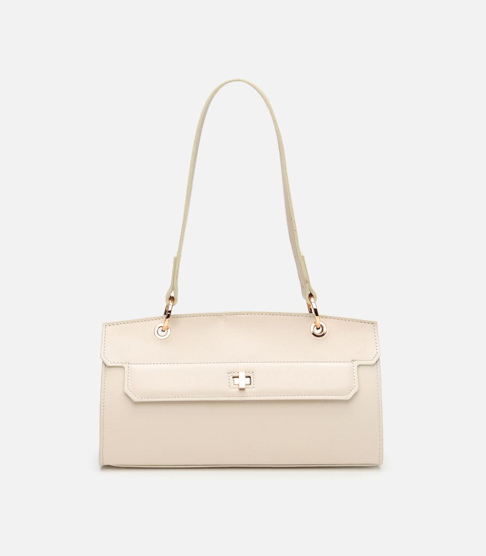 Kadın Deri Ekru Kilit Detaylı Omuz çantası