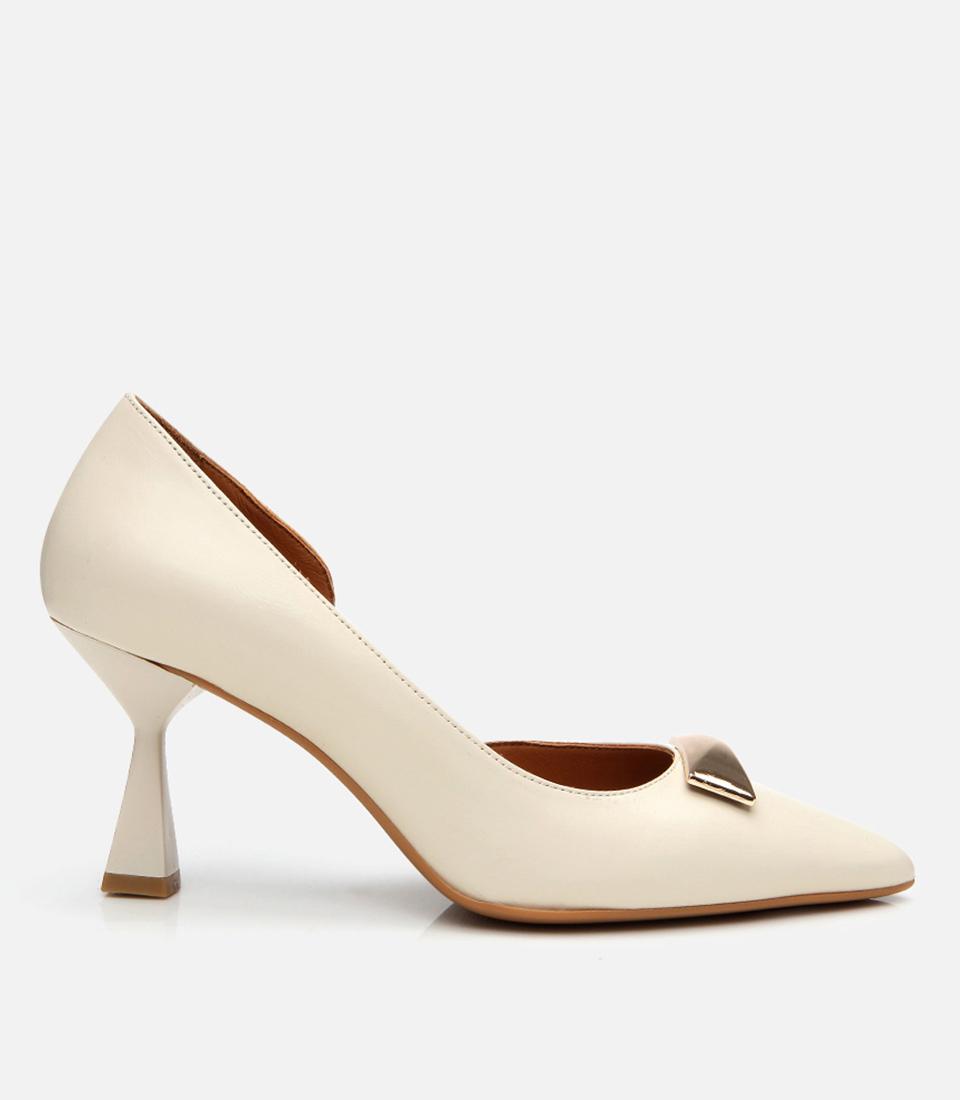 Kadın Deri Ekru Tokalı Stiletto