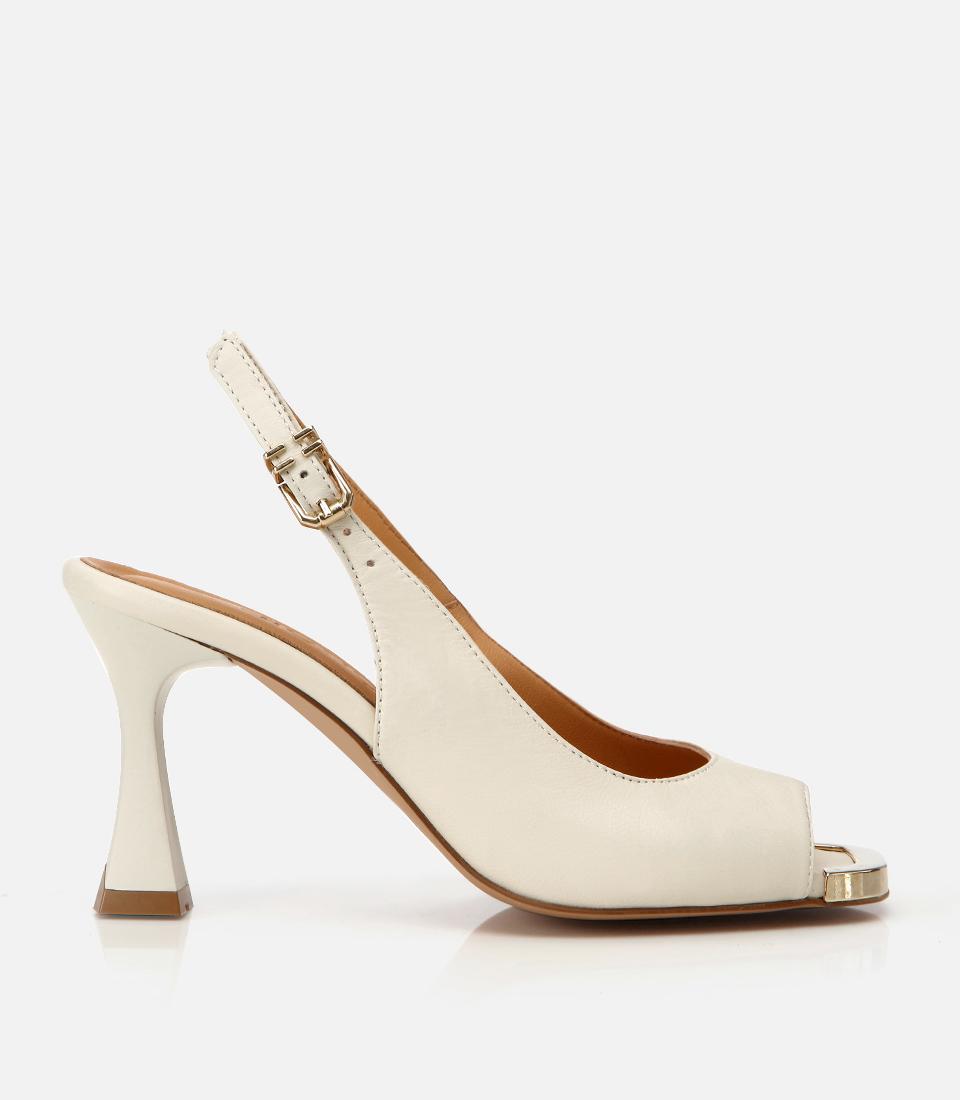 Kadın Deri Ekru Topuklu Sandalet