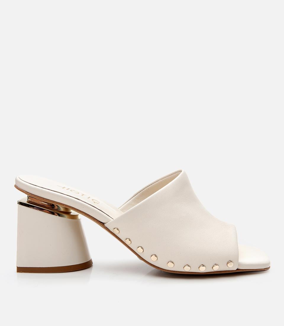 Kadın Deri Ekru Topuklu Terlik