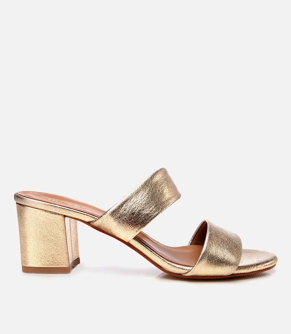 Kadın Deri Gold Kalın Topuklu Terlik