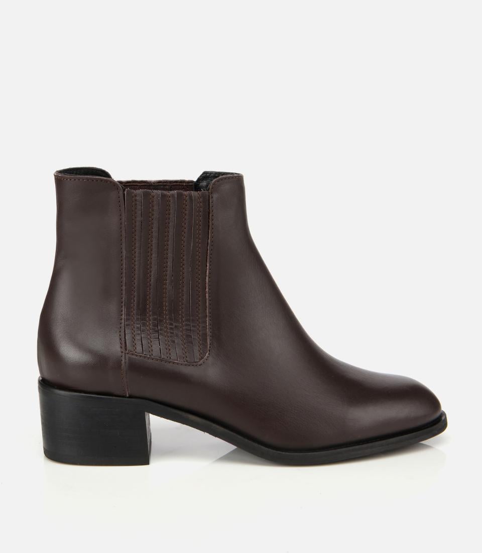 Kadın Deri Kahverengi Lastik Detaylı Bilekte Düz Bot