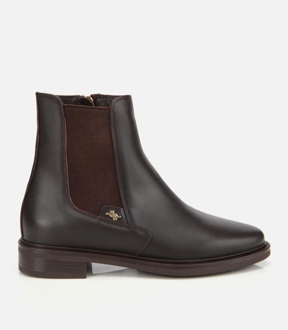 Kadın Deri Kahverengi Lastik Detaylı Bilekte Düz Bot
