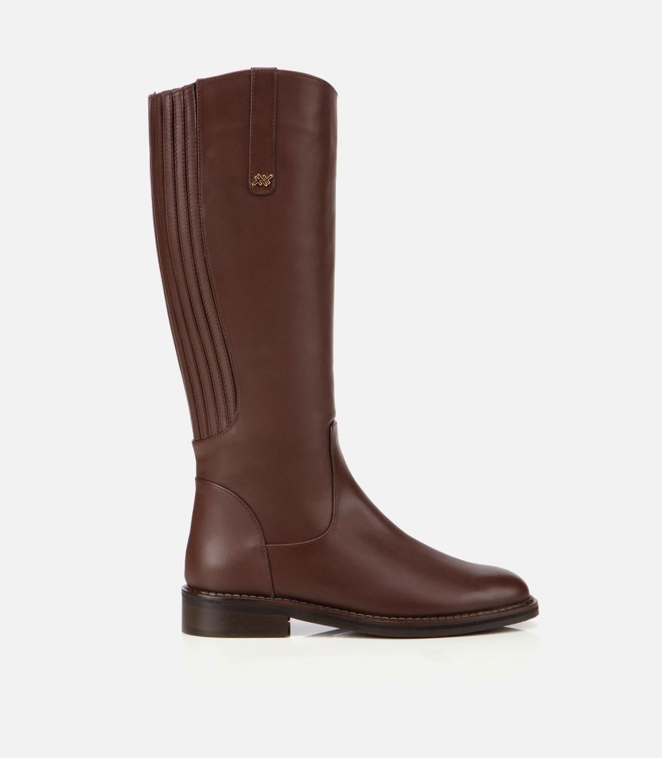 Kadın Deri Kahverengi Lastik Detaylı Binci Düz Çizme