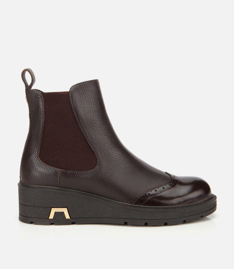 Kadın Deri Kahverengi Lastik Detaylı Dolgu Topuklu Bot