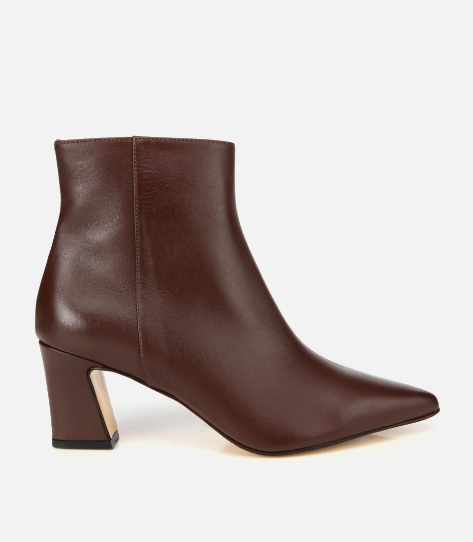 Kadın Deri Kahverengi Sivri Burunlu Bilekte Topuklu Bot