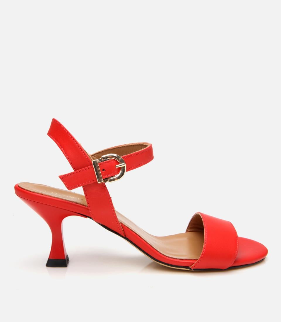 Kadın Deri Kırmızı Kemerli Topuklu Sandalet