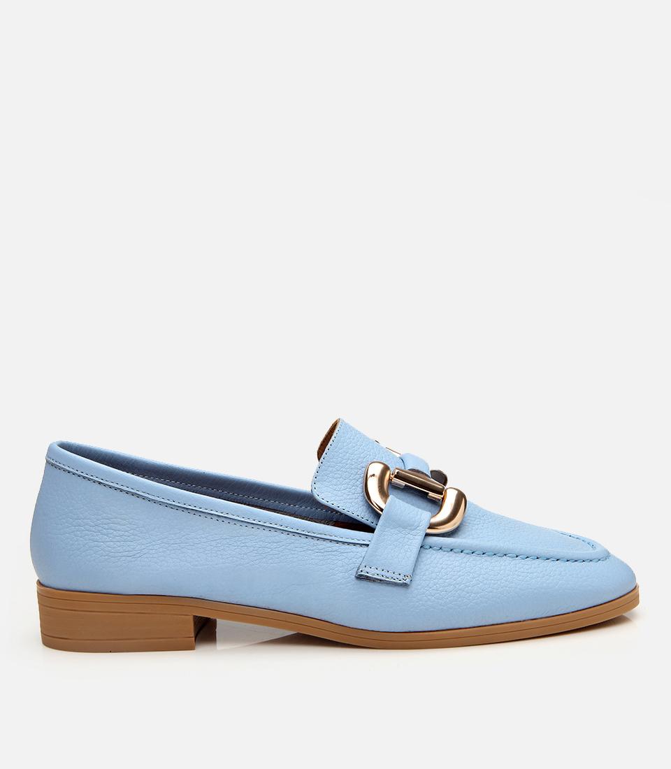 Kadın Deri Mavi Tokalı Günlük Loafer