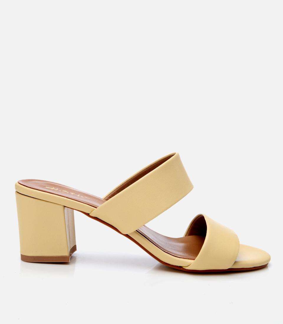 Kadın Deri Sarı Kalın Topuklu Terlik
