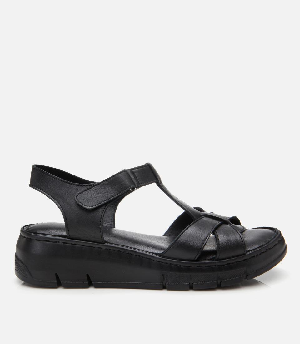 Kadın Deri Siyah Ayarlanabilir Comfort Sandalet