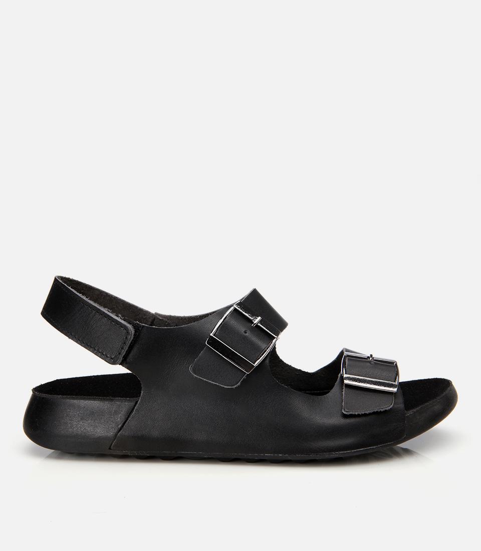 Kadın Deri Siyah Ayarlanabilir Dolgu Topuklu Sandalet