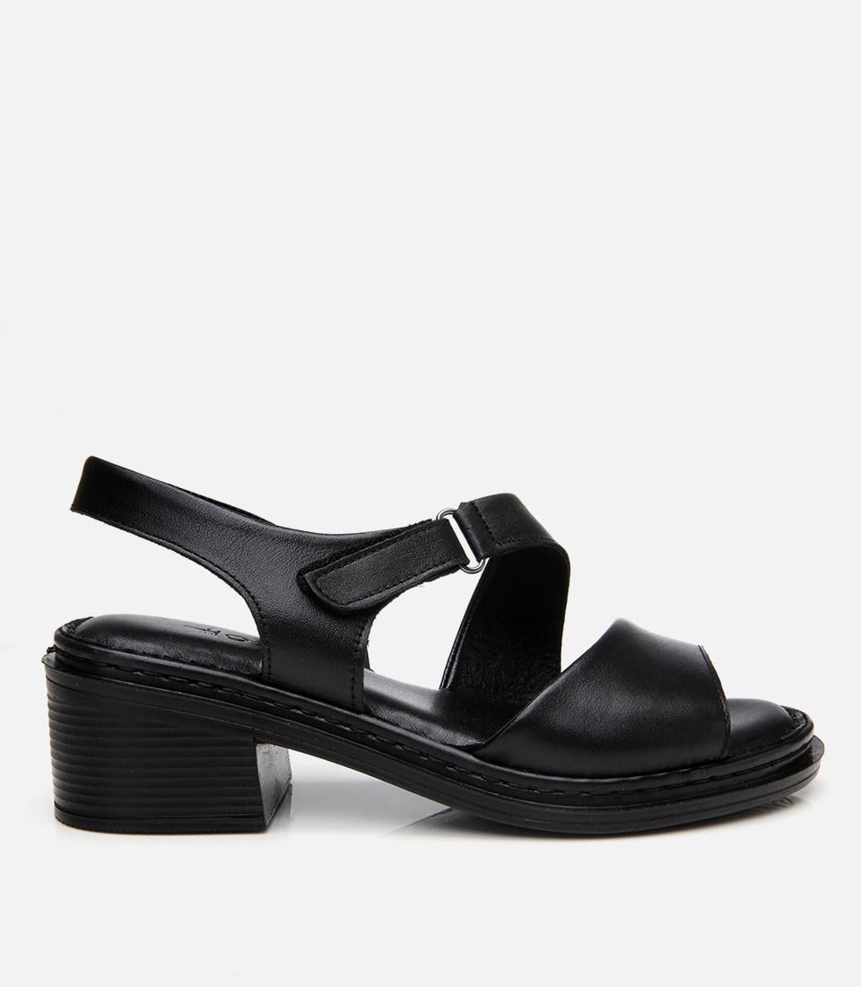 Kadın Deri Siyah Ayarlanabilir Rahat Topuklu Sandalet