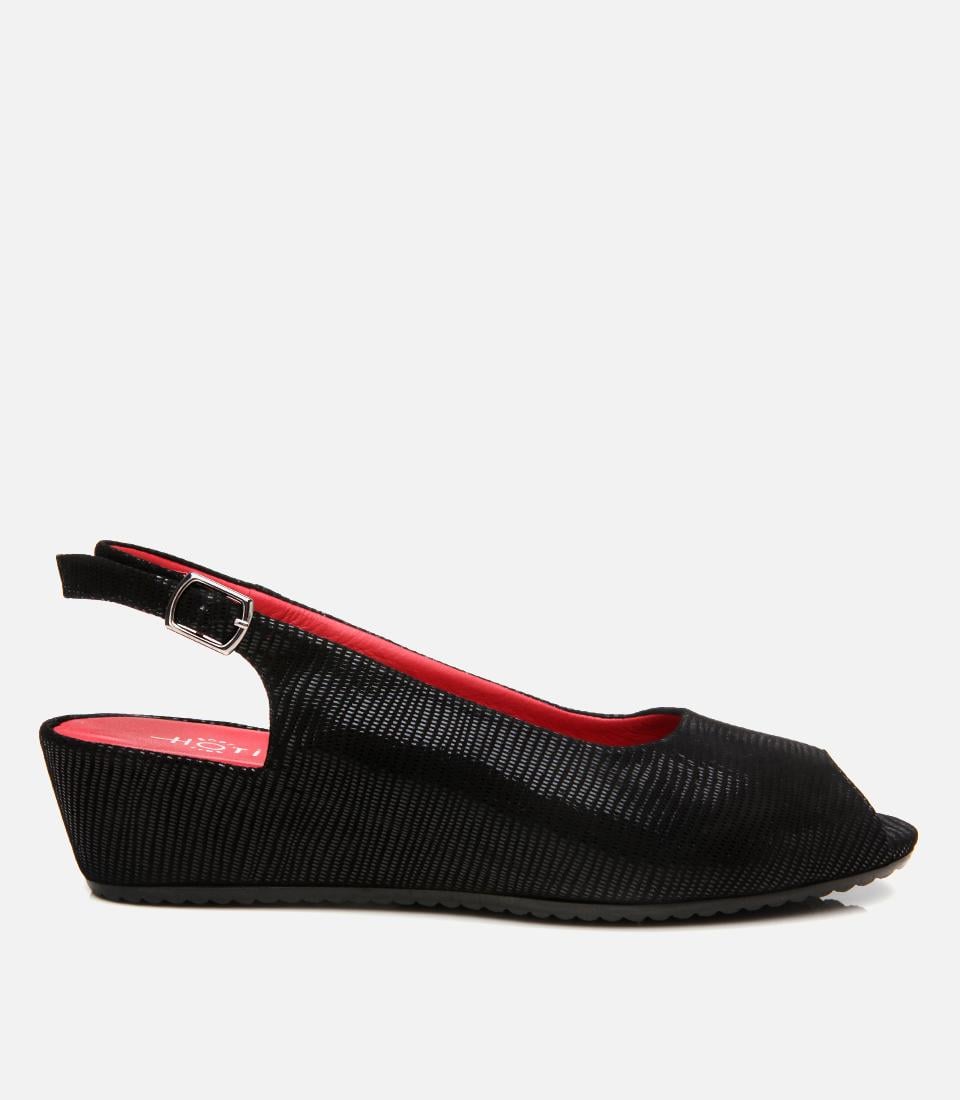 Kadın Deri Siyah Esnek Dolgu Topuklu Sandalet