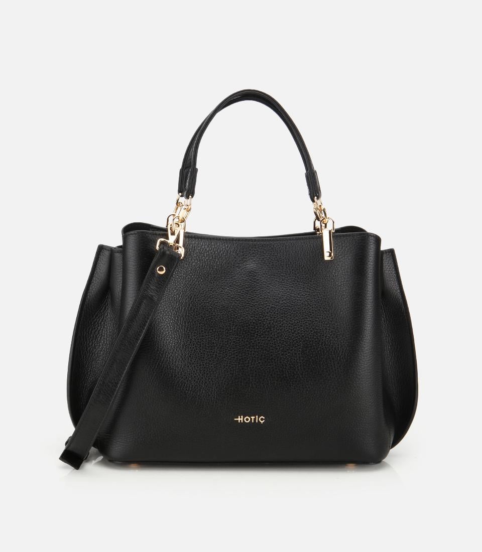 Kadın Deri Siyah Fermuarlı Omuz Çantası
