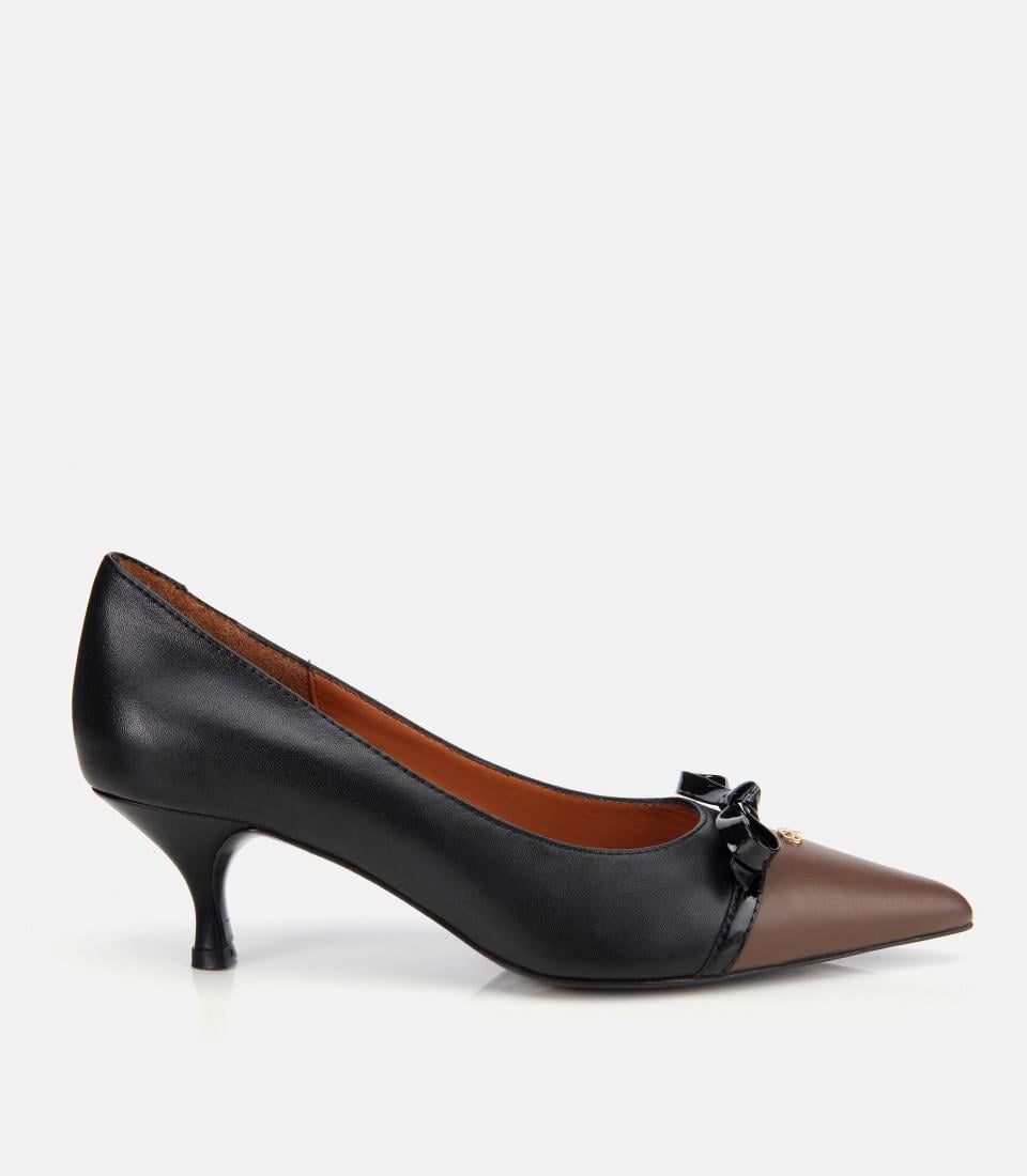 Kadın Deri Siyah Fiyonk Detaylı İnce Topuklu Stiletto