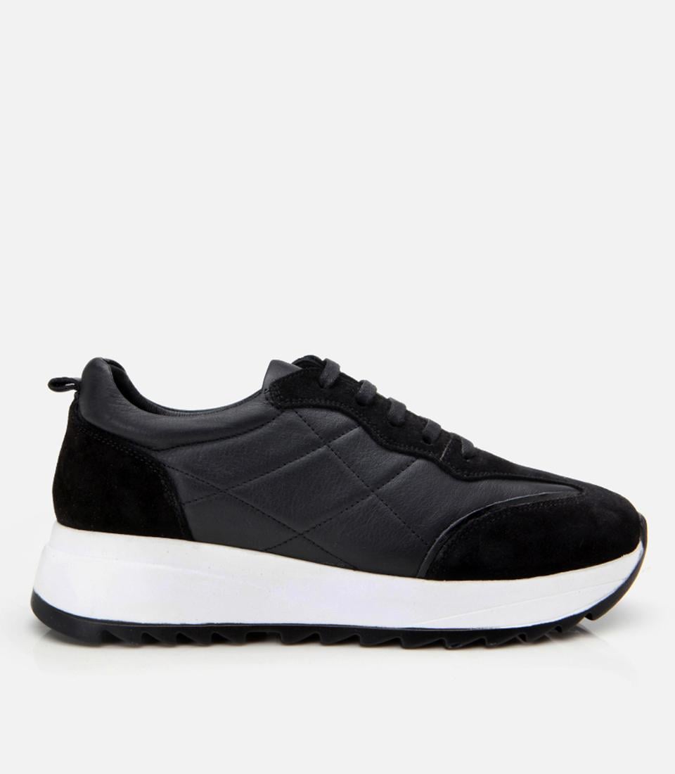 Kadın Deri Siyah Kalın Tabanlı Spor Ayakkabı