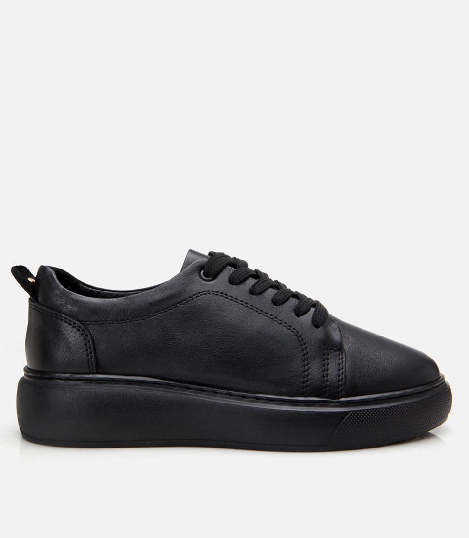 Kadın Deri Siyah Kalın Tabanlı Spor Ayakkabı