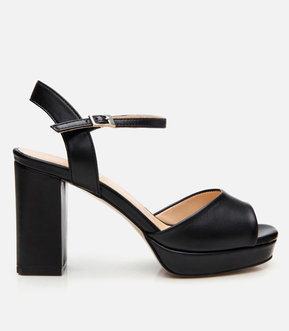 Kadın Deri Siyah Kalın Topuklu Sandalet