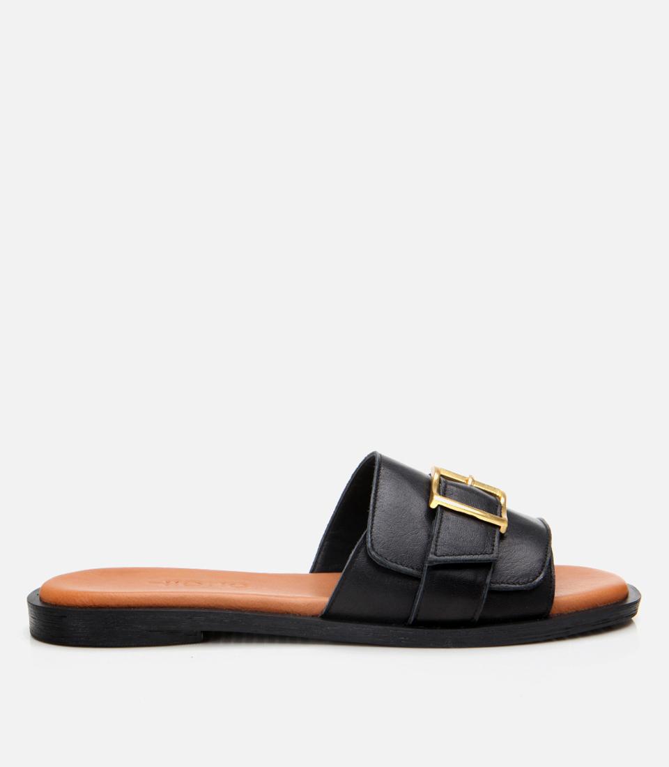 Kadın Deri Siyah Kemer Detaylı Düz Terlik