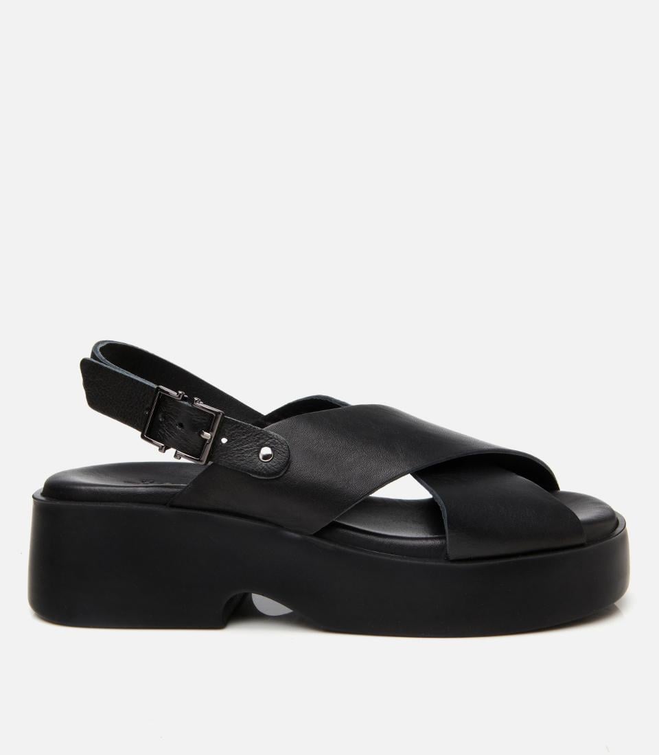 Kadın Deri Siyah Kemerli Dolgu Topuklu Sandalet