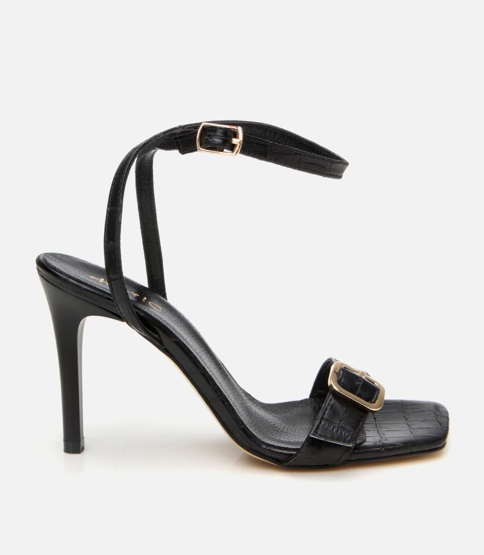 Kadın Deri Siyah Kemerli Topuklu Sandalet