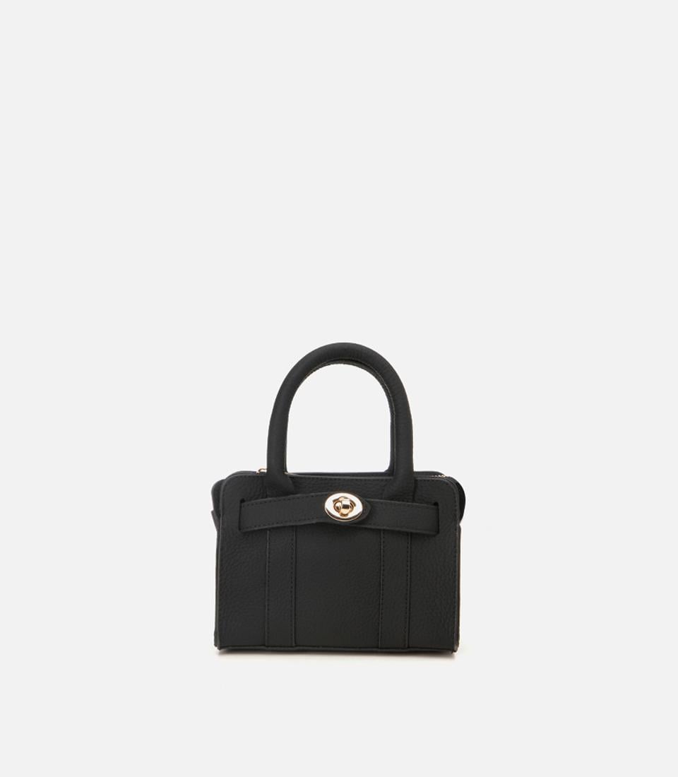 Kadın Deri Siyah Kilit Detaylı Mini Çanta