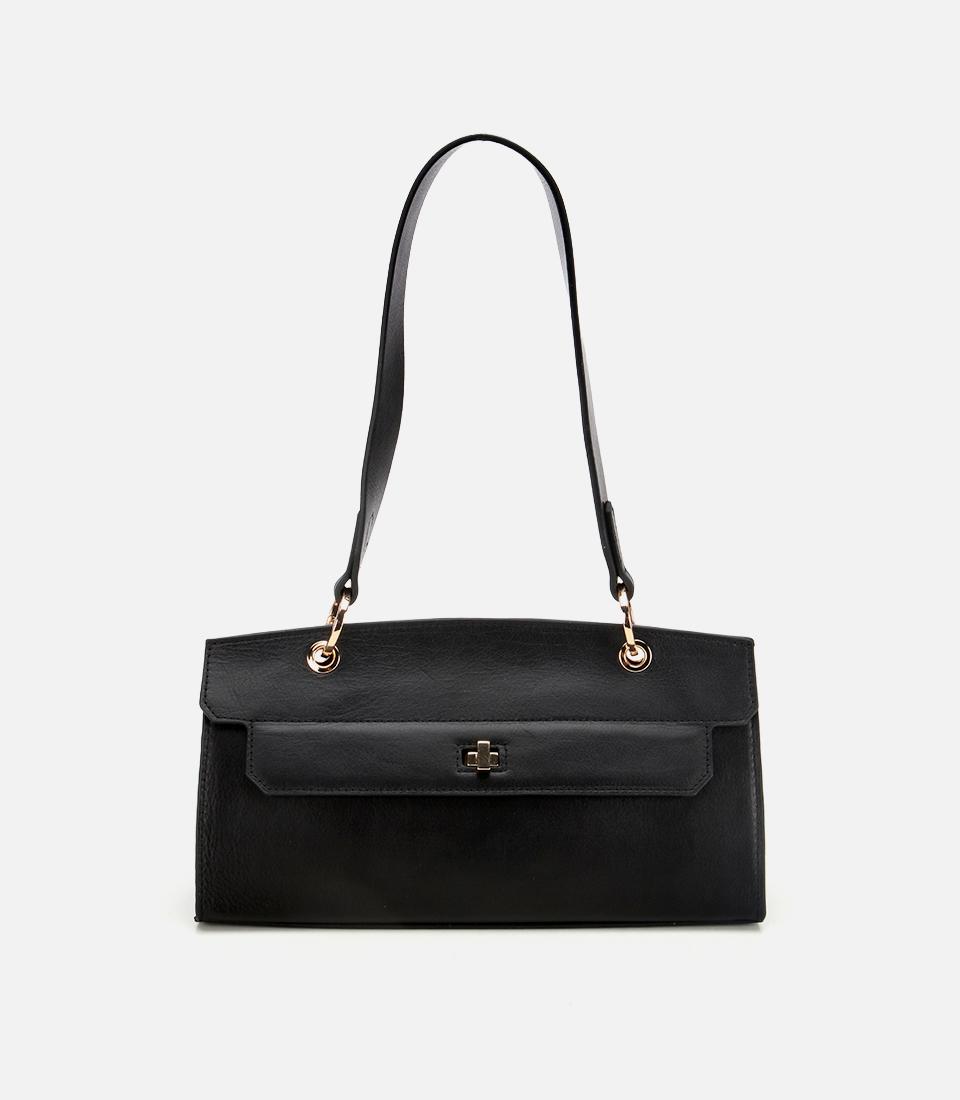 Kadın Deri Siyah Kilit Detaylı Omuz Çantası