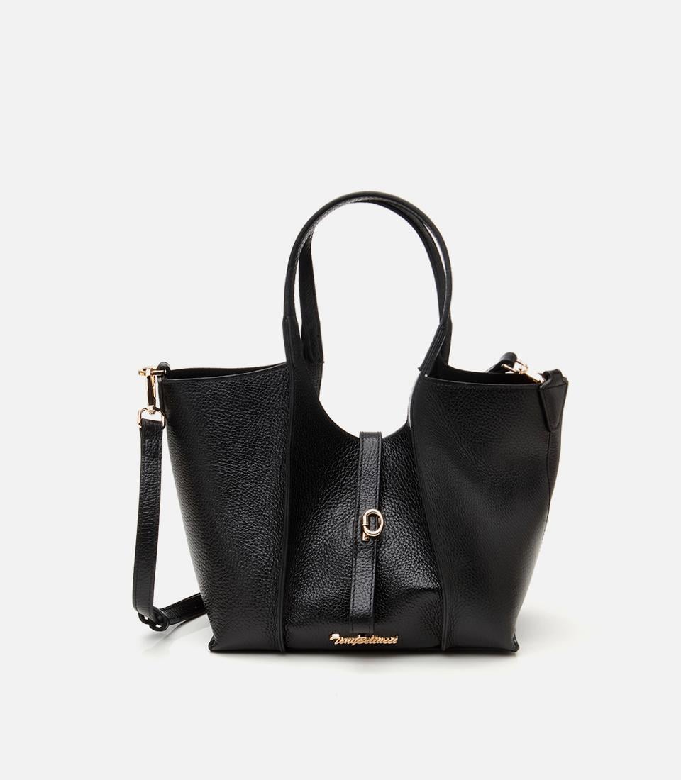 Kadın Deri Siyah Kilit Detaylı Tote Çanta