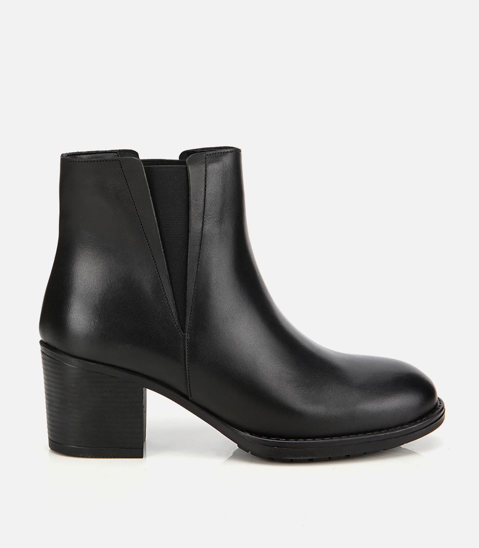 Kadın Deri Siyah Lastik Detaylı Bilekte Topuklu Bot