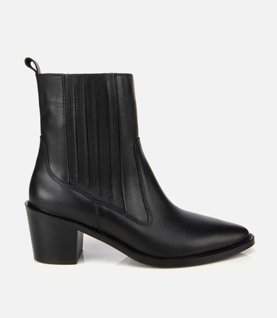 Kadın Deri Siyah Lastik Detaylı Fermuarlı Kovboy Düz Bot