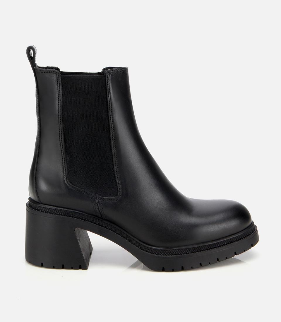 Kadın Deri Siyah Lastik Detaylı Kalın Topuklu Bot