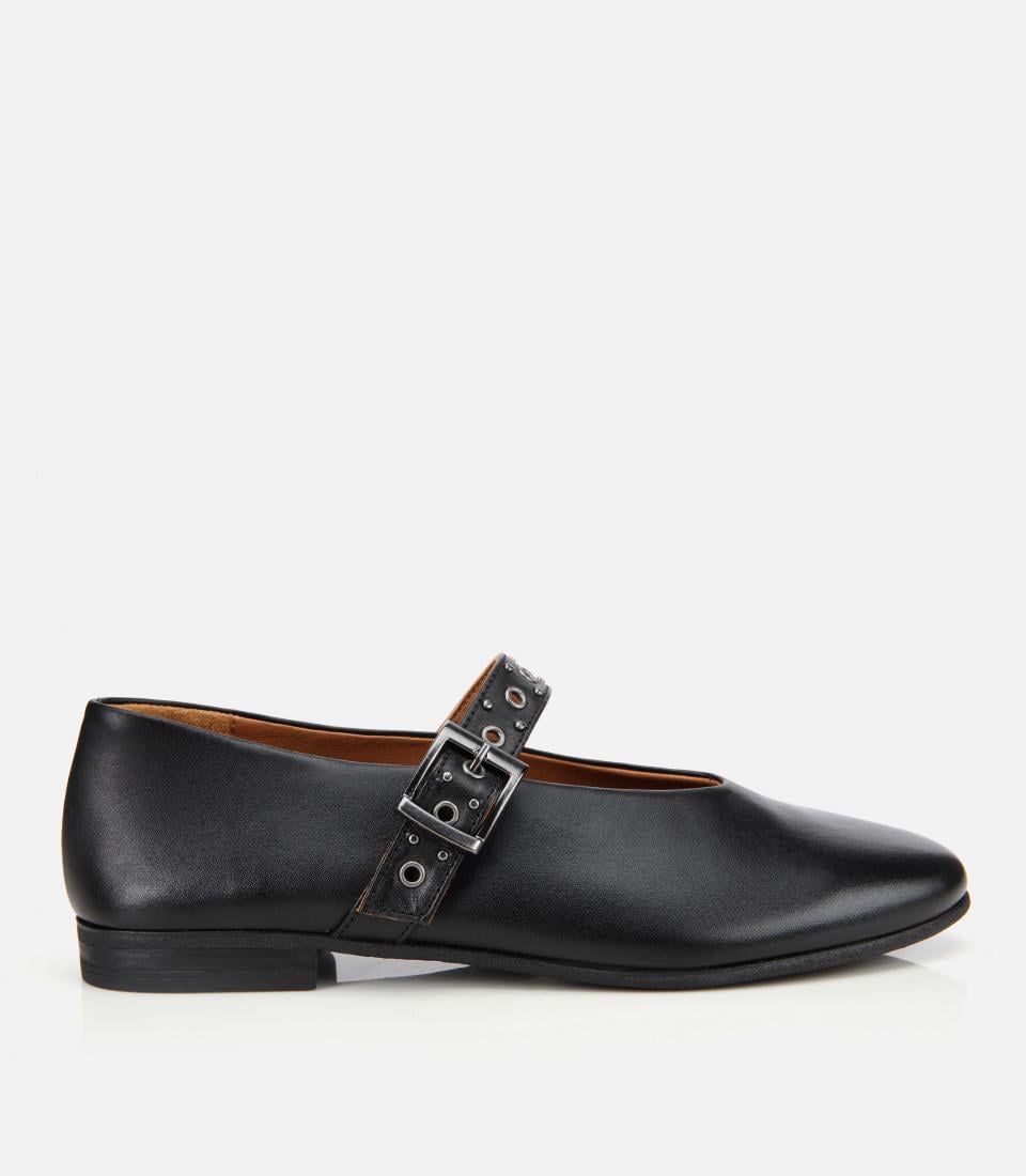 Kadın Deri Siyah Mary Jane Kemerli Babet