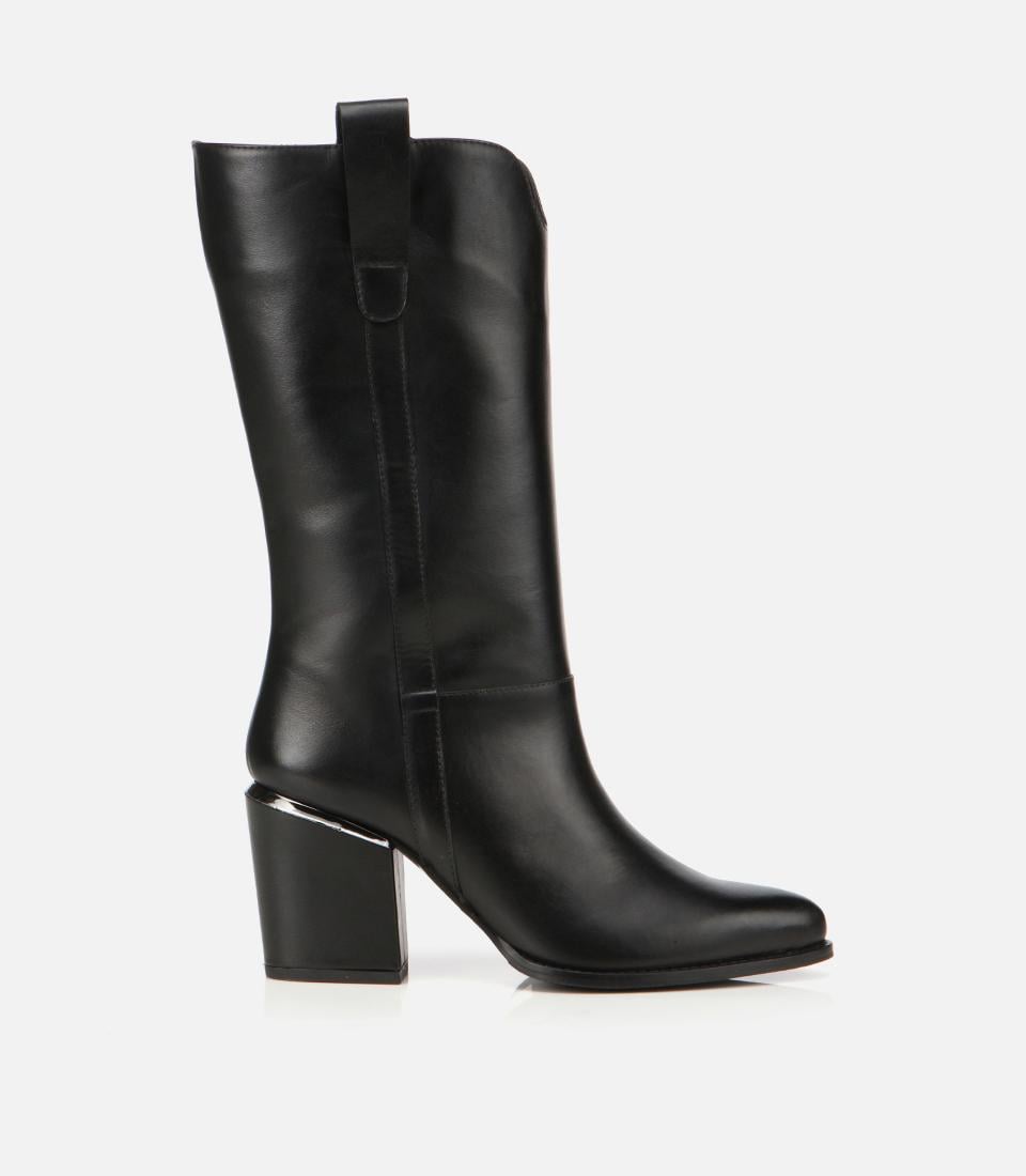 Kadın Deri Siyah Metal Detaylı Topuklu Çizme