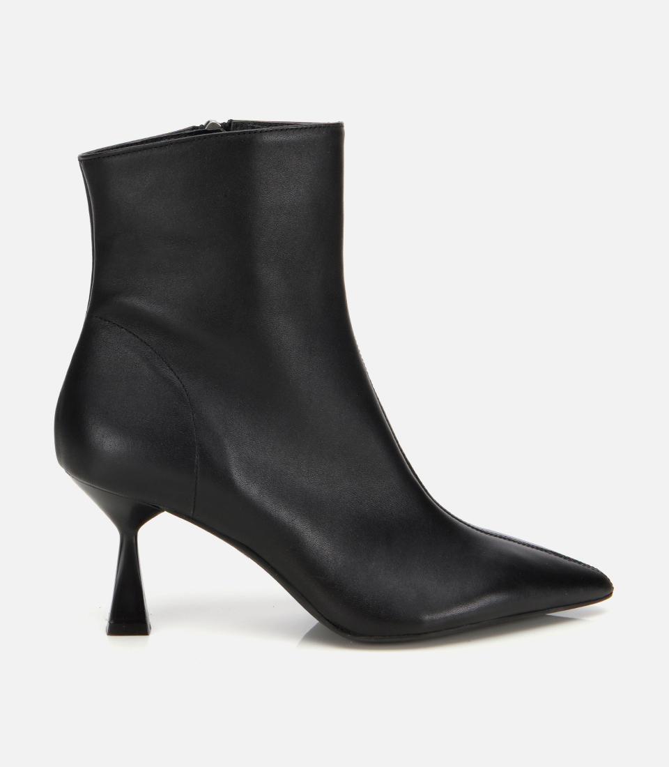 Kadın Deri Siyah Sivri Burunlu Bilekte Topuklu Bot