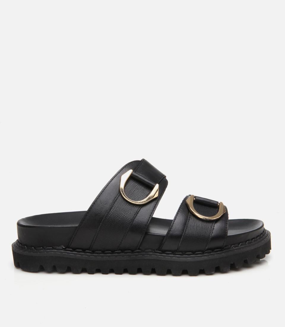 Kadın Deri Siyah Tokalı Düz Terlik