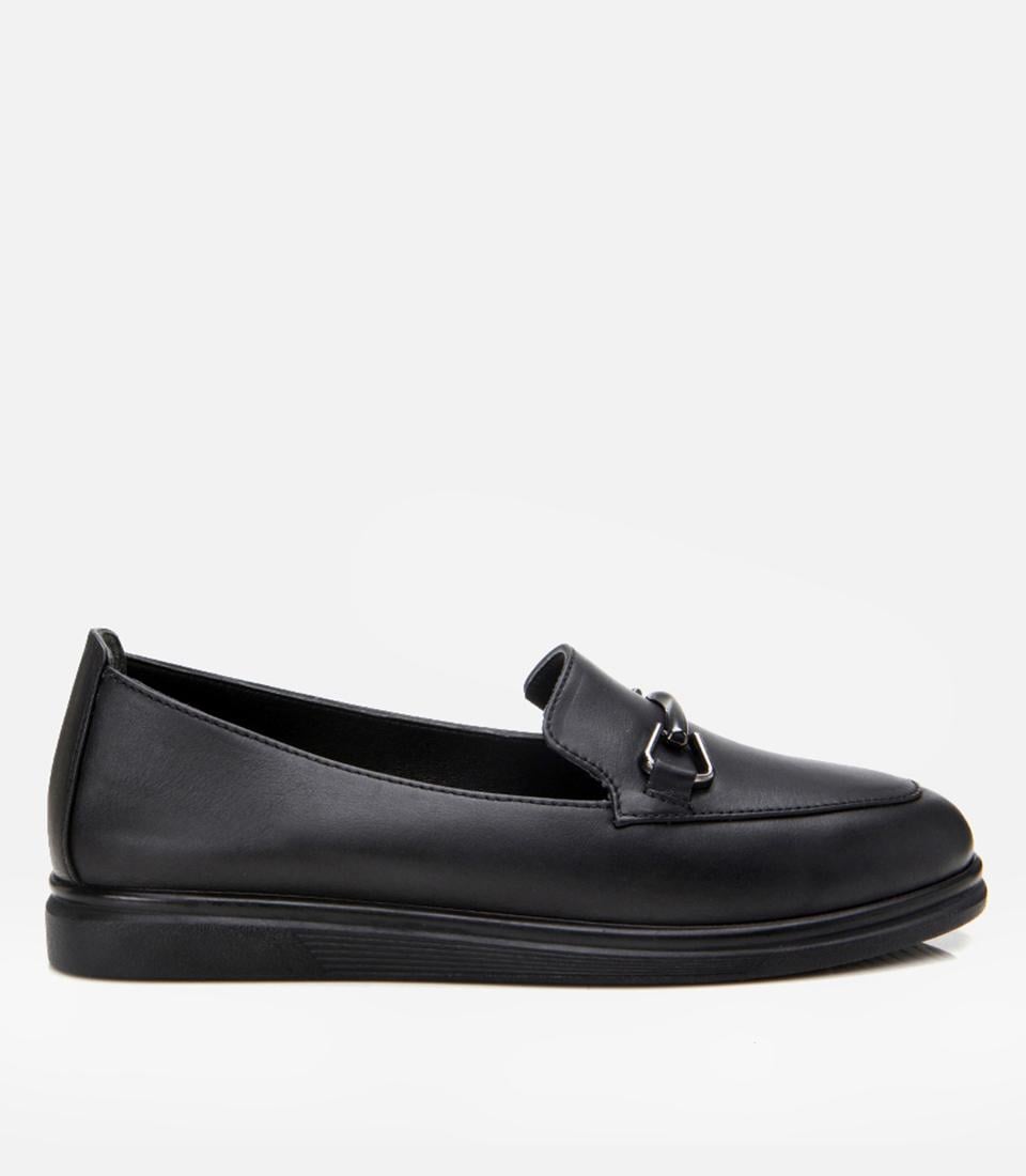 Kadın Deri Siyah Tokalı Günlük Loafer