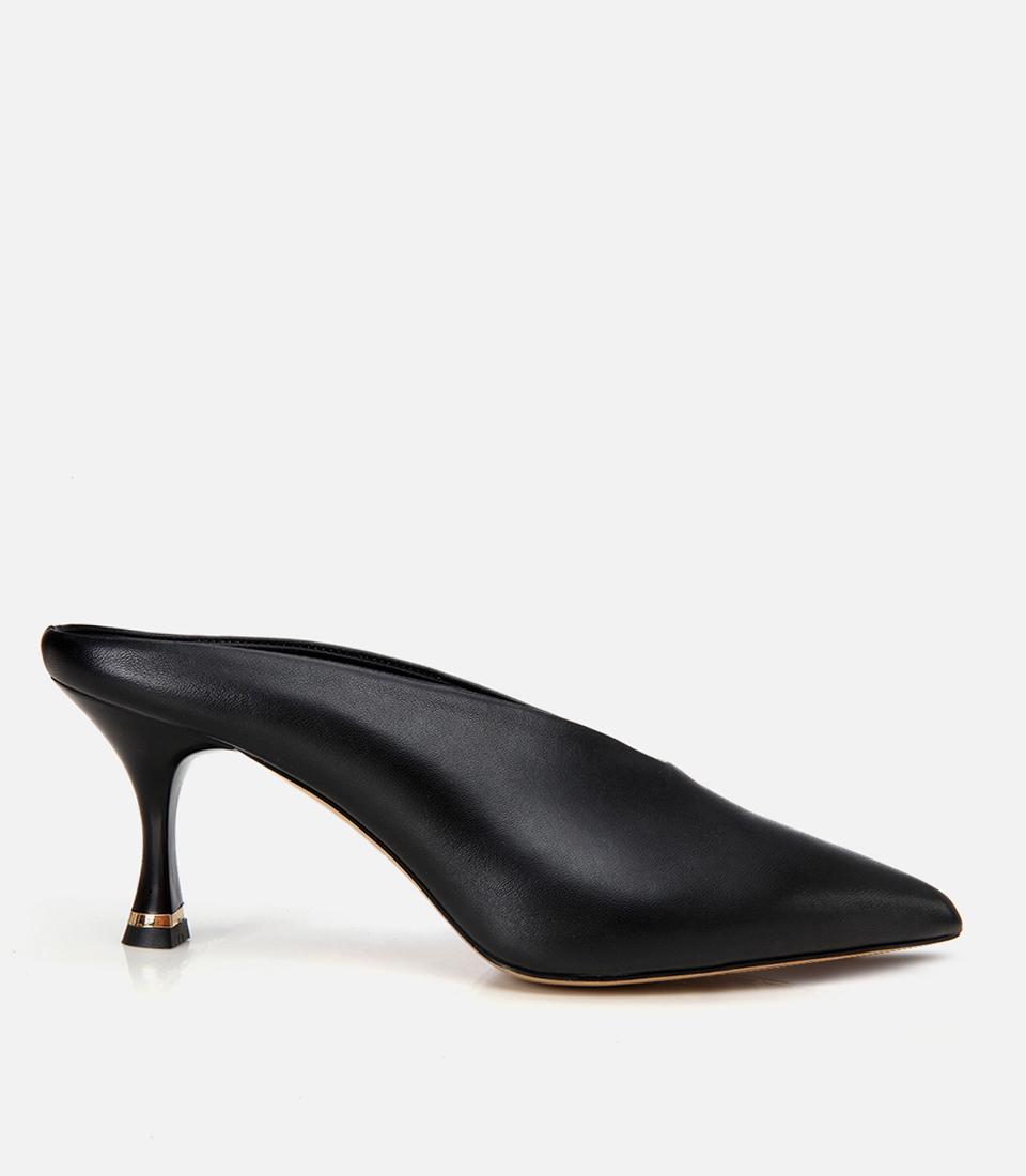 Kadın Deri Siyah Topuklu Terlik