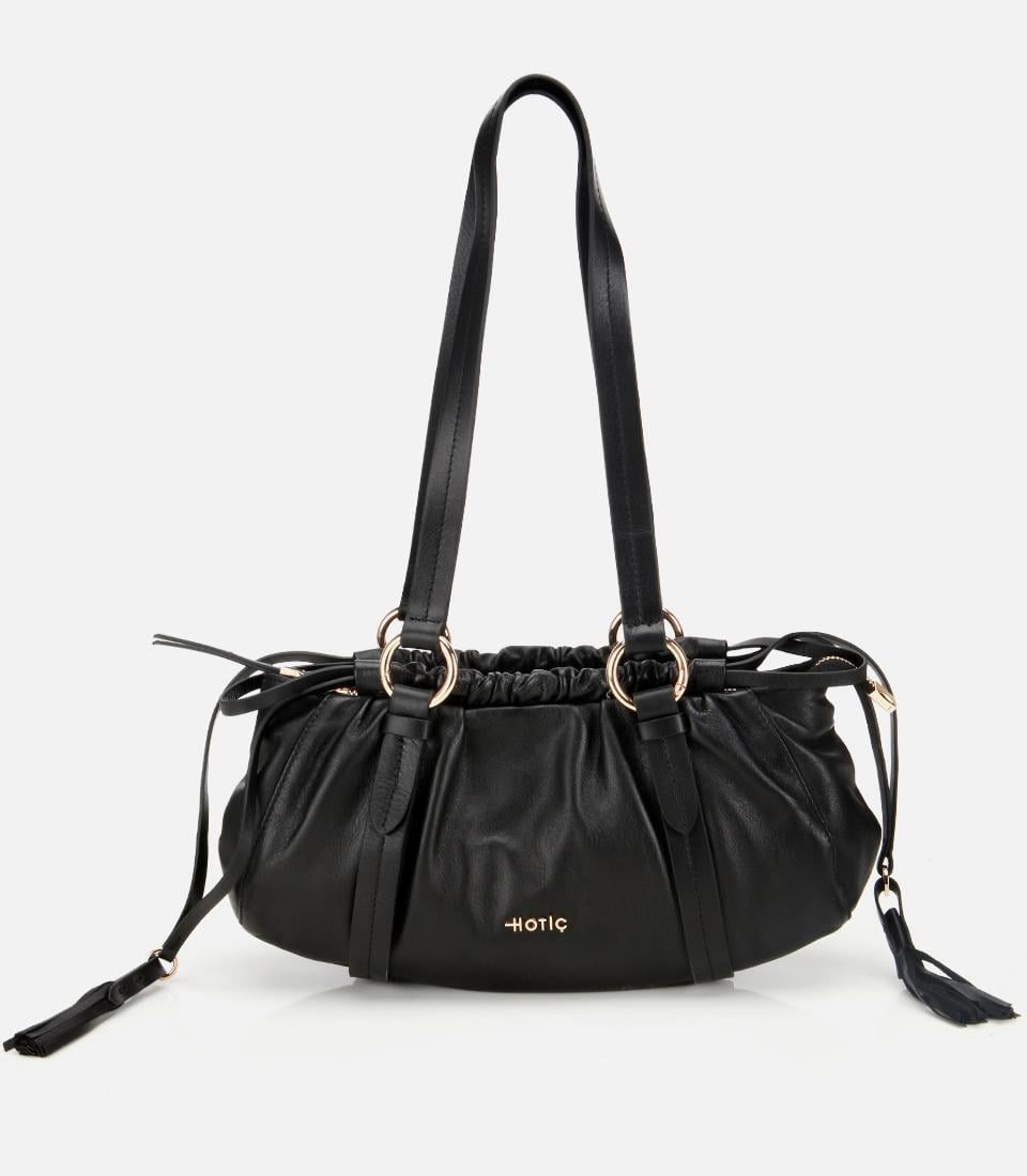 Kadın Deri Siyah Yumuşak Dokulu Bowling Omuz Çantası