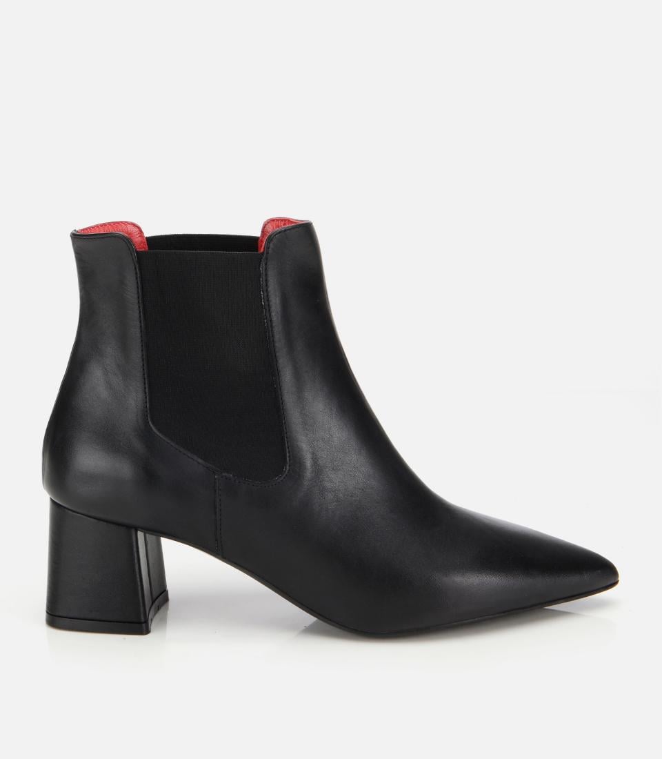 Kadın Deri Siyah Yumuşak Dokulu Lastik Detaylı Topuklu Bot