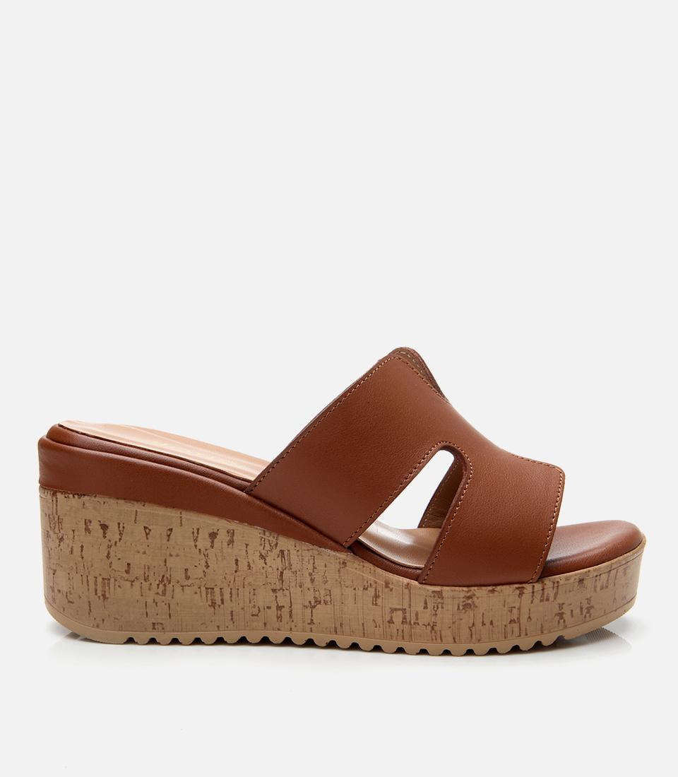 Kadın Deri Taba Dolgu Topuklu Terlik