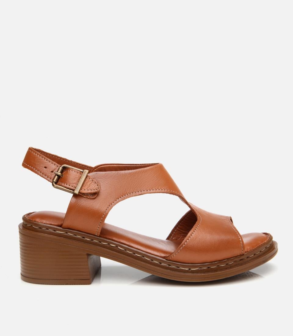 Kadın Deri Taba Kemerli Rahat Topuklu Sandalet