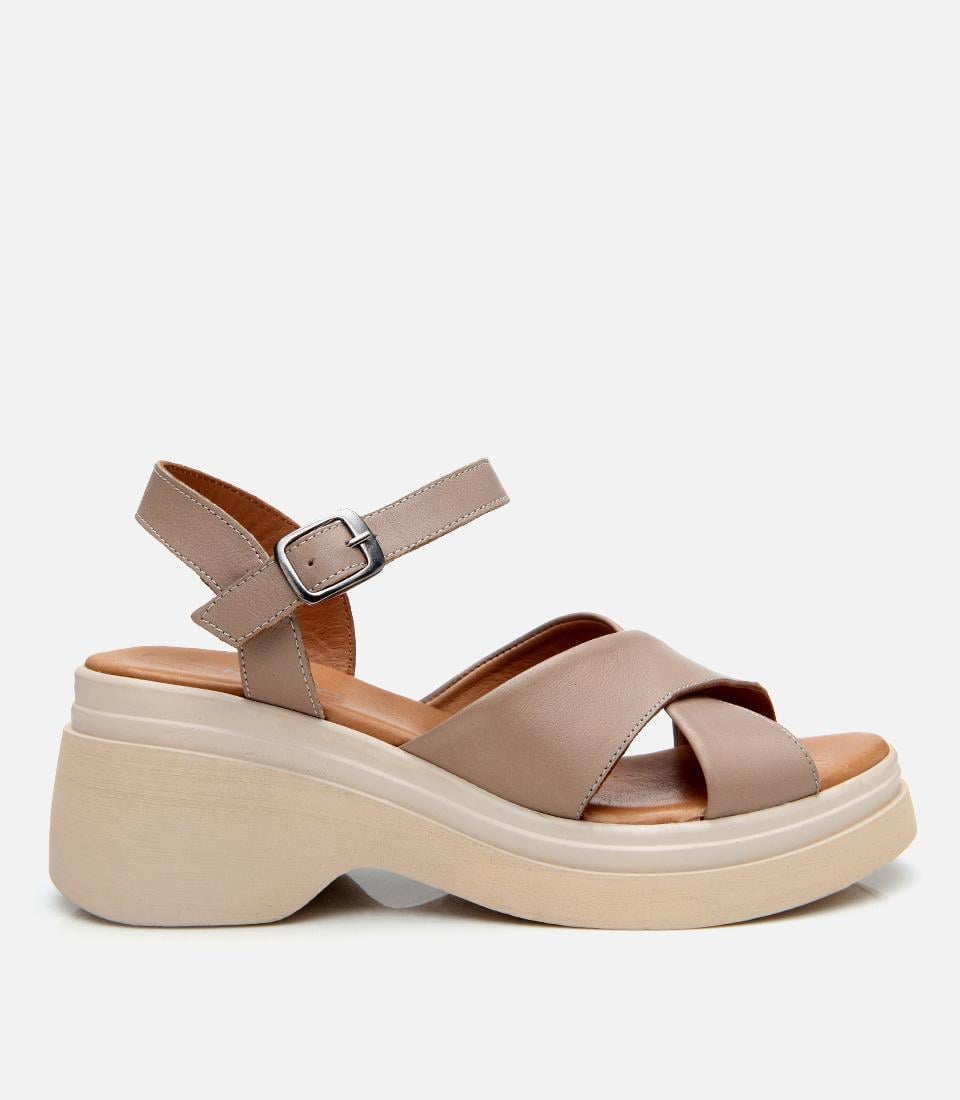 Kadın Deri Vizon Dolgu Topuklu Sandalet