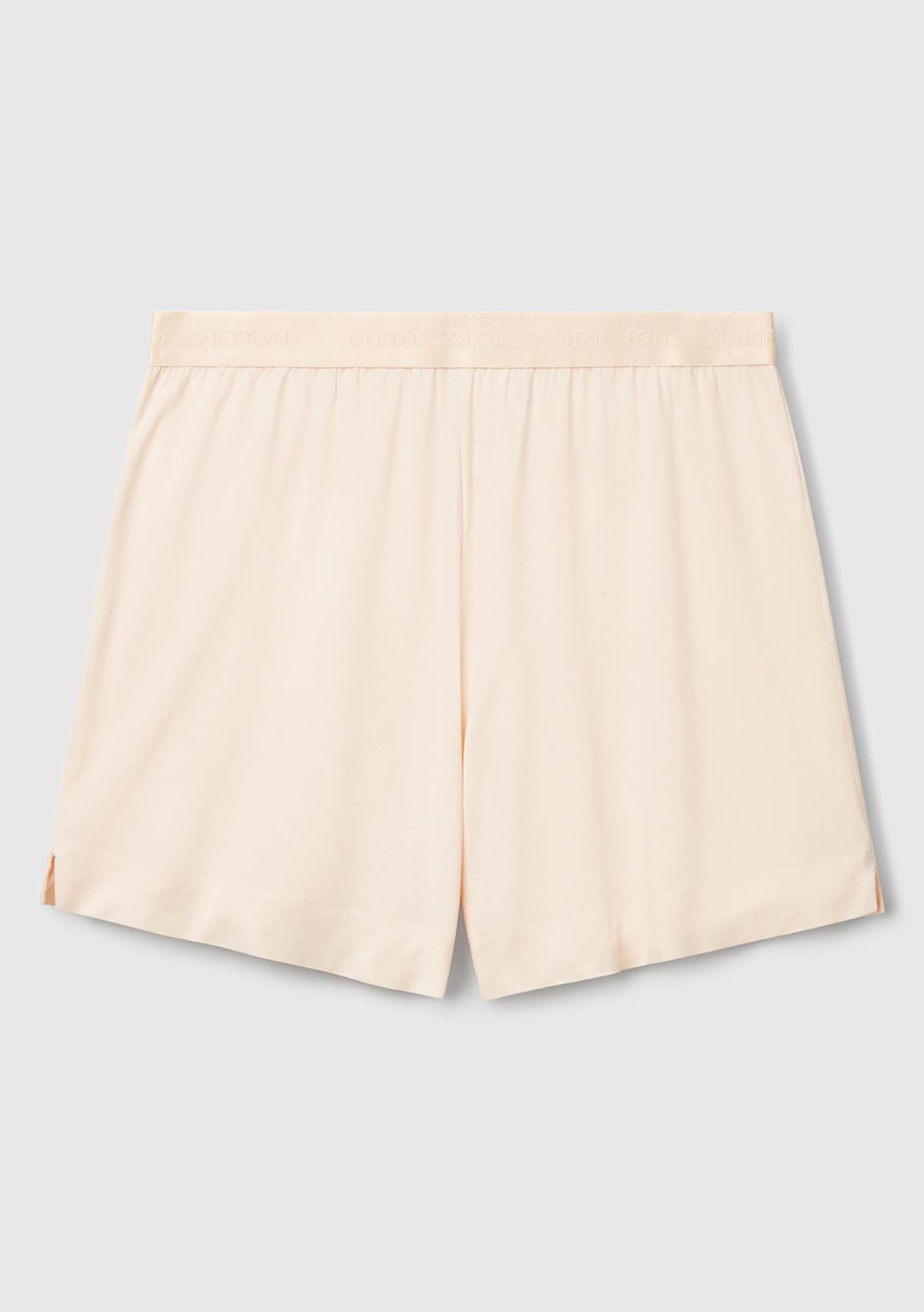 Kadın Ekru Beli Logo Bantlı Bermuda Şort