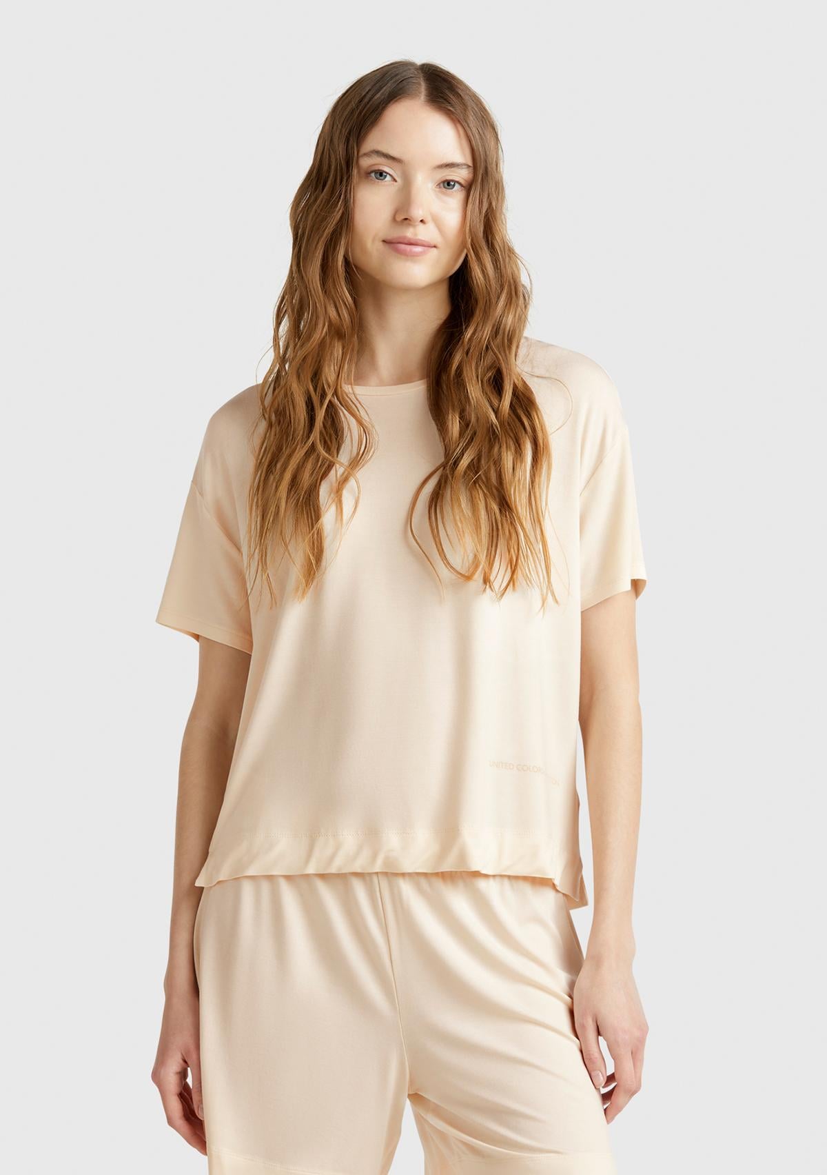 Kadın Ekru Logo Baskılı Bisiklet Yaka T-Shirt