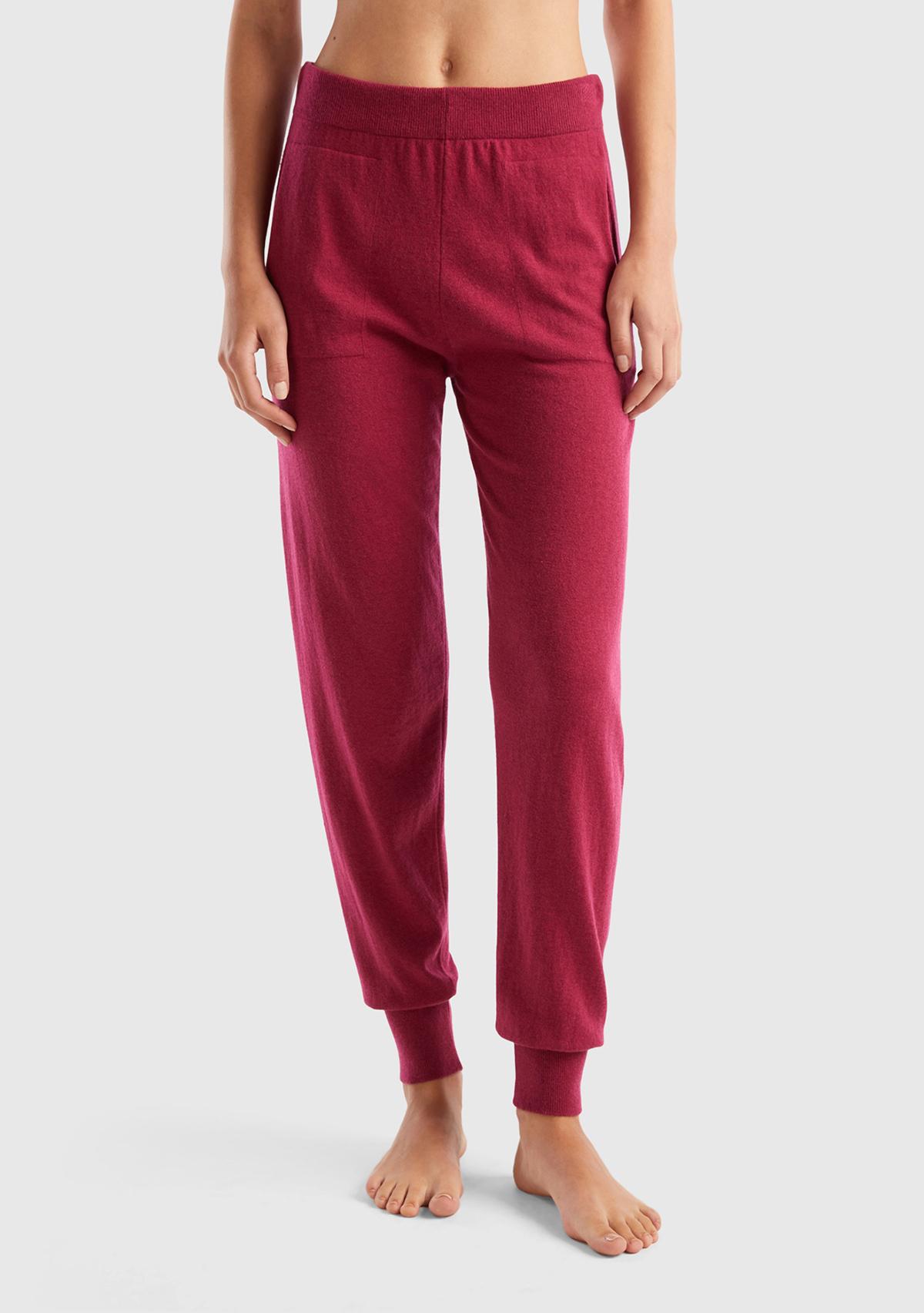 Kadın Fuşya Paçası Lastikli Kaşmir Karışım Pantolon