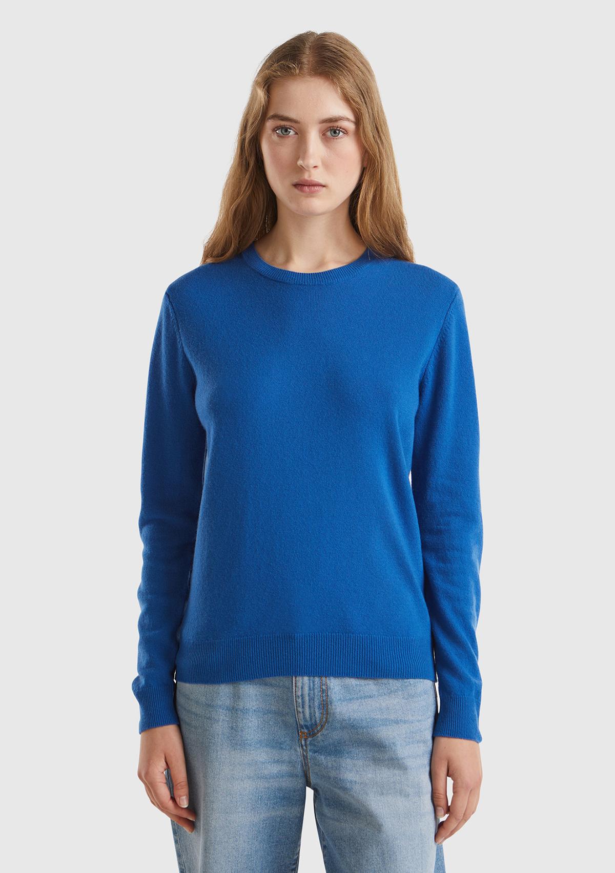 Kadın Gece Mavisi Bisiklet Yaka %100 Merino Kazak. Koyun Yünü İçerir