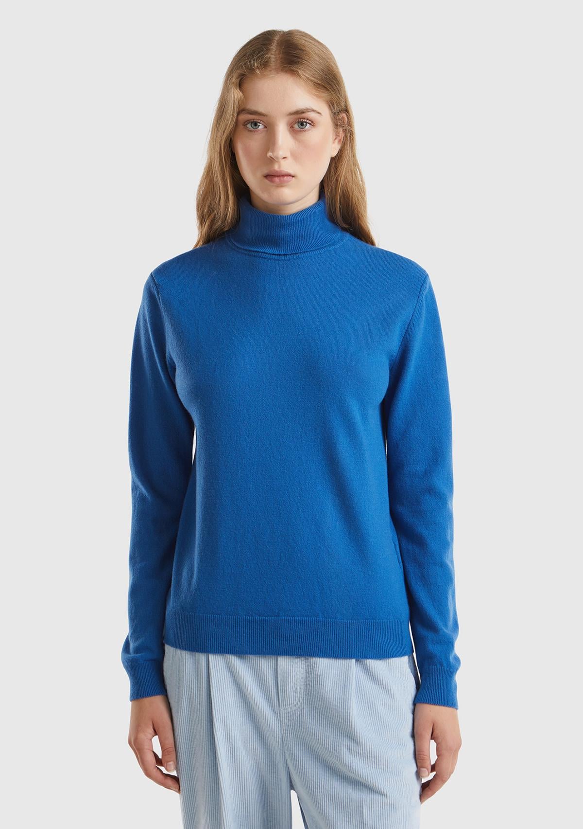 Kadın Gece Mavisi Dik Yaka %100 Merino Kazak. Koyun Yünü İçerir
