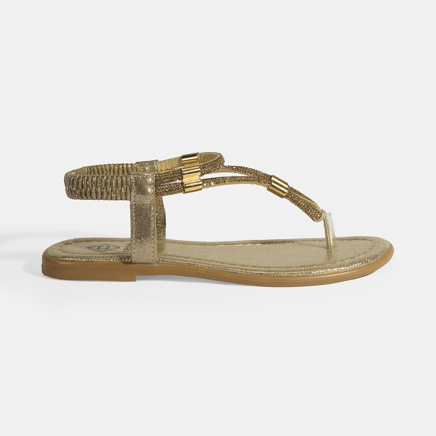 Kadın Gold Taşlı Lastik Bantlı Parmak Arası Sandalet